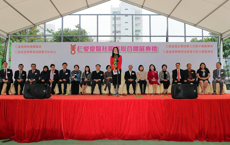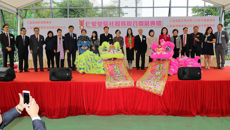 本會會長羅台秦博士,顧問會長李嘉音、陳趙滿菊,副會長張伯煌、吳肖梅、何思遠、曹陳金玲,榮譽會長王茂林、方劉小梅,理事周媛、定如凈、黃美慧、洪麗孟、沈蔡孟真代表出席《仁愛堂醫社服務聯合開展典禮》。是次典禮為「仁愛堂國際華商協進會牙科中心」、「仁愛堂國際華商協進會流動中醫醫療車」、「仁愛堂圓玄學院流動中醫醫療車」及「仁愛堂羅台秦關愛基金(精神健康)」服務開展而舉行。 在食物及衛生局局長陳肇始教授太平紳士、香港中文大學中醫學院院長梁挺雄教授 BBS、沙田區議會主席何厚祥 SBS, MH、屯門民政事務專員馮雅慧太平紳士、沙田民政事務專員陳婉雯太平紳士及社會福利署沙田區福利專員李張一慧女士的見證之下,以「國際華商協進會」命名的仁愛堂中醫流動醫療車及牙科中心,正式開始為香港巿民提供服務,本會深感榮幸!